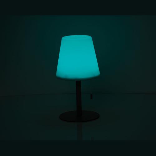 Outdoor lamp with color change and modern design (Ø 16.5 × 30 cm), with a runtime of 8–10 hours, 3.7V, and 2,400 mAh rechargeable batteries, lampshade is made from PP , lampbase is metal. Ideal for the garden, terrace, or balcony, creating a cozy outdoor atmosphere with various light colors.
