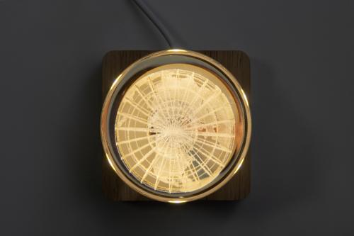 Glass globe ball with wooden LED light base. Including USB charger cable.
