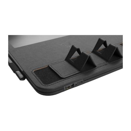 An elegant multifunctional Pierre Cardin office mouse pad with a leather-like surface. The mouse pad contains a 10W wireless charger with 5V/2A 9V/1.67A input and 5V/1A 9V/1.1A output, a mobile phone stand, an erasable writting pad with a stylus pen, two pen loops, a glass with backlight for placing your logo and an extra USB input. The mouse pad is rechargable by an USB-C cable which is included in the package. Packed in a gift box, comes with a certificate of authenticity.