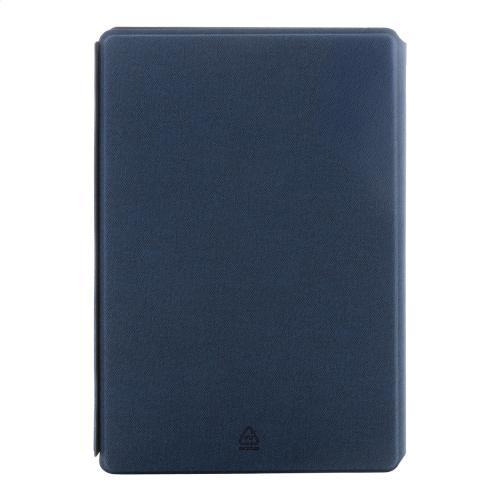 A5 sized, recycled PU leather document folder with inside organizer pockets and magnetic closure. With 64 lined sheets notepad in recycled paper.