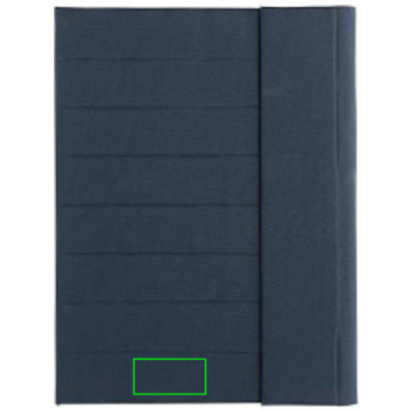 Keep all your work essentials organised with this beautiful A4 Aware™ RPET portfolio with magnetic closure. Inside you will find 1 big sleeve pocket, 2 additional pockets and a pen loop. Including FSC recycled paper notepad. The notepad contains 20 sheets cream coloured lined 70gm/s recycled paper. Interior and exterior 100% recycled polyester. With AWARE™ tracer that validates the genuine use of recycled materials. Each portfolio has reused 3.2 0.5L PET bottles. 2% of proceeds of each Impact product sold will be donated to Water.org. PVC free.