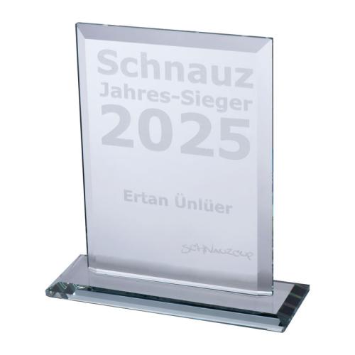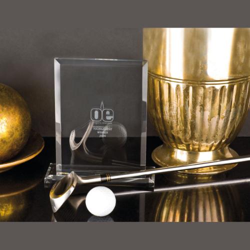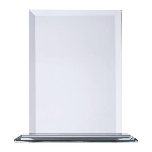 Elegant glass award, safely packed in a blue box with satin inlay.