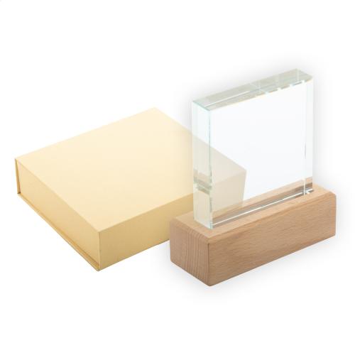 Glass trophy with beech wood base. In kraft gift box.