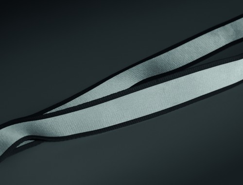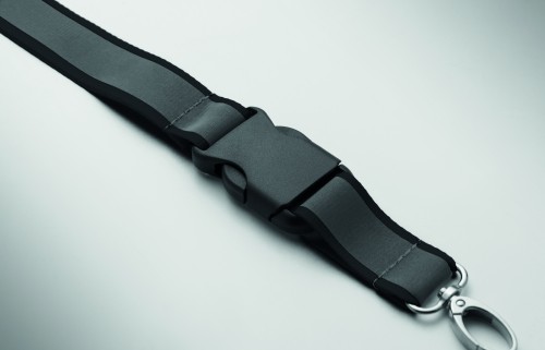Reflective RPET polyester lanyard with 2.5 cm strap, metal hook, detachable PP buckle and safety breakaway. For promotional use only.