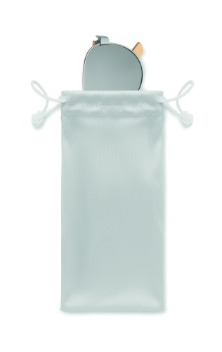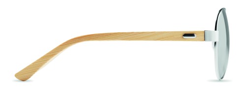 Sunglasses with bamboo arms and coloured mirrored lenses in microfibre pouch. UV400 protection. Bamboo is a natural product, there may be slight variations in colour and size per item, which can affect the final decoration outcome.