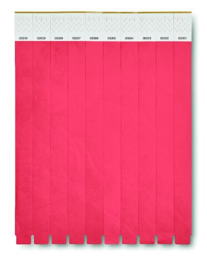 One sheet of 10 event wristbands. DuPont ™ Tyvek® 19mm wide. Including unique numbering on each wristband.
