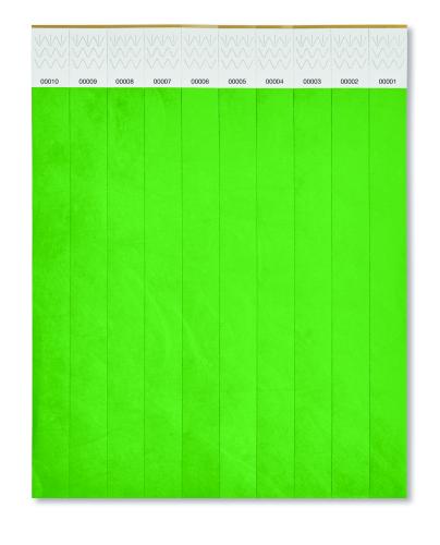 One sheet of 10 event wristbands. DuPont ™ Tyvek® 19mm wide. Including unique numbering on each wristband.