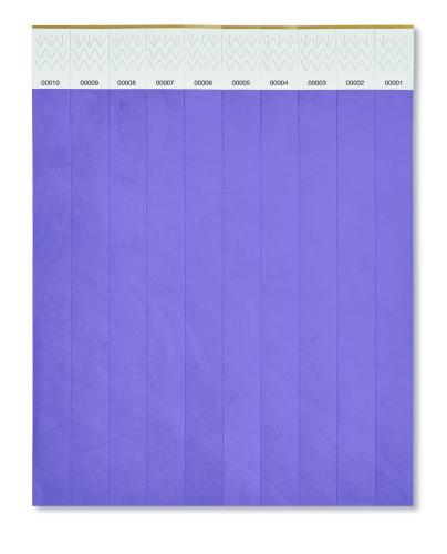 One sheet of 10 event wristbands. DuPont ™ Tyvek® 19mm wide. Including unique numbering on each wristband.