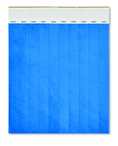 One sheet of 10 event wristbands. DuPont ™ Tyvek® 19mm wide. Including unique numbering on each wristband.