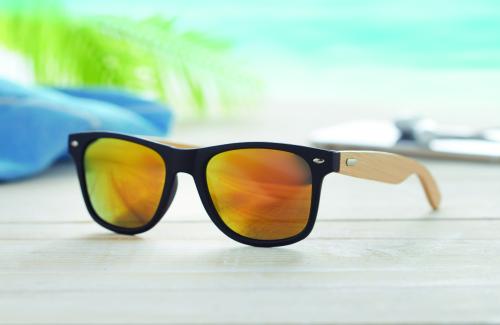 Vintage sunglasses with bamboo arms and PC frame with coloured mirrored lenses . UV400 protection. Bamboo is a natural product, there may be slight variations in colour and size per item, which can affect the final decoration outcome.