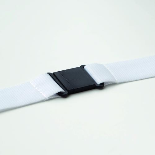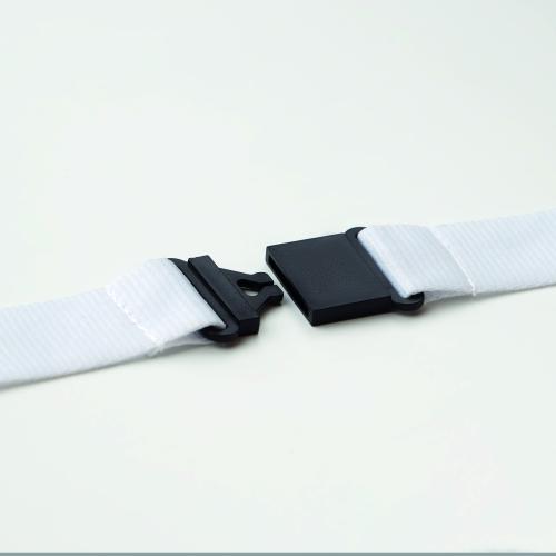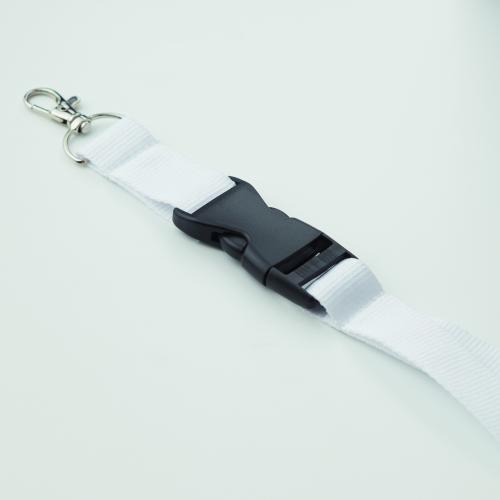 Lanyard with metal hook, detachable buckle and safety breakaway. 25mm wide. Sublimation print available on white item only.