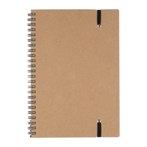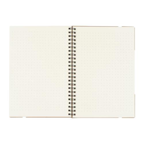 A5 Notebook with ring binder mechanism, ruler, 120 dotted pages, sticky notes and elastic strap.