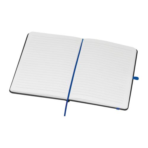 A5 notebook with imitation leather cover and 192 lined pages, coloured ribbon marker and elastic band.