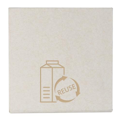 Notepad with 200 note sheets made from recycled milk carton paper.