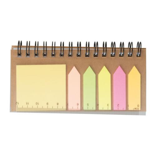 Sticky note set with different sticky markers and notes (25 sheets each), ruler edge in spiral notepad (80 lined pages).