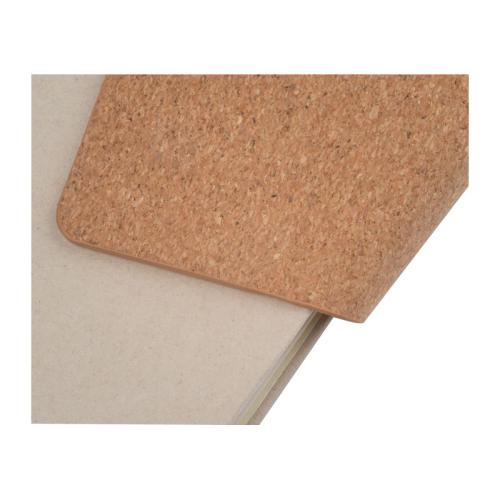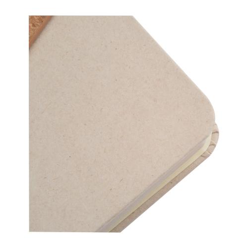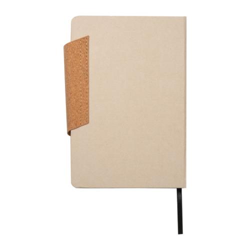 Notebook with a cover made from recycled milk carton, a magnetic closure made from cork and 160 lined pages made from sugar cane, ribbon marker and biros loop.