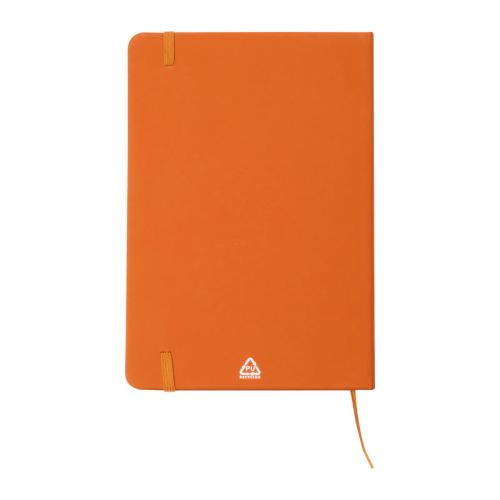A5 notebook with a cover made of recycled PU and 160 lined pages made of recycled paper.