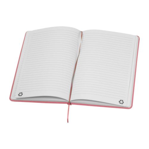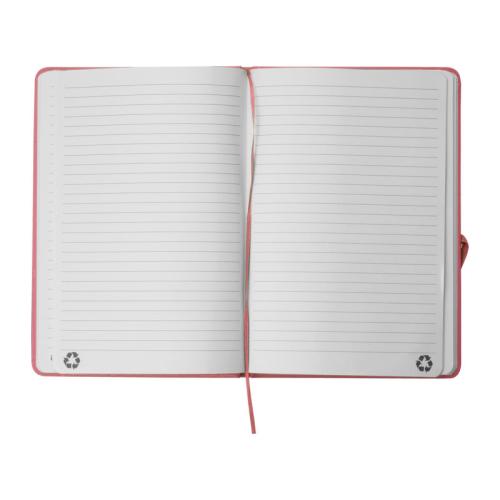 A5 notebook with a cover made of recycled PU and 160 lined pages made of recycled paper.