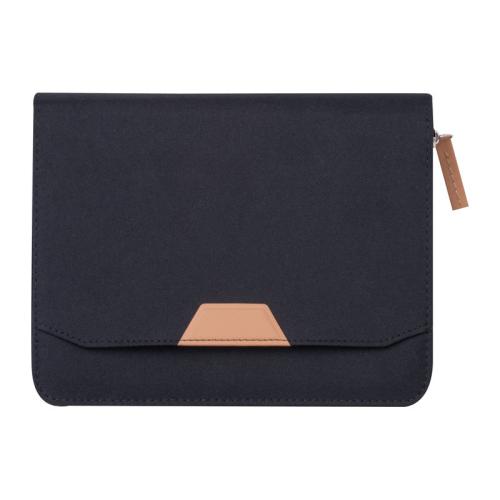A5 writing folder made of recycled PET with a zipper and a removable notebook containing 144 lined pages (72 sheets) made of sugarcane paper. The folder features a large storage compartment and smaller pockets inside.