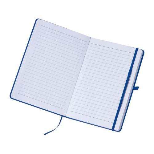 A5 notebook with 160 lined pages and hard cover made of PU for notes. With black bookmark and rubber strap.