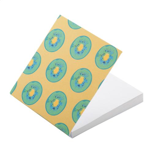 Custom made, paper covered sticky notepad. Includes 50 sheets of recycled paper sticky notes (75×75 mm). Price includes full colour printed outside cover. MOQ: 100 pcs.