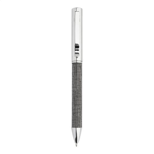 300D RPET polyester covered notebook with 100 lined sheets and rubber strap. Including an RPET polyester covered metal ballpoint pen, with blue refill. A5 size.