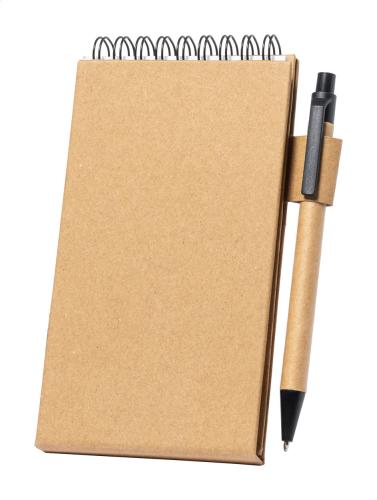 225 sticky notes in different sizes with ballpoint pen in recycled paper case.