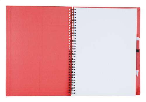 Carton covered spiral notebook with 80 blank sheets, and matching colour recycled paper ballpoint pen with blue refill, A4.