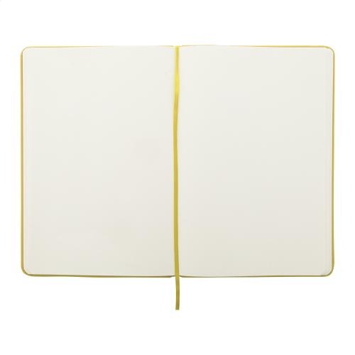 Note set with PU leather covered notebook with 100 blank sheets and matching colour plastic ballpoint pen with blue refill. In white gift box.