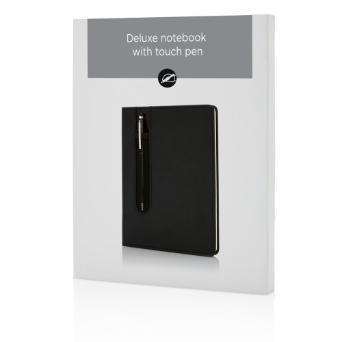 The perfect combo: A5 PU notebook with pen sleeve and a metal stylus pen. Packed in giftbox. 160 pages of 80g/m2 paper Inside.