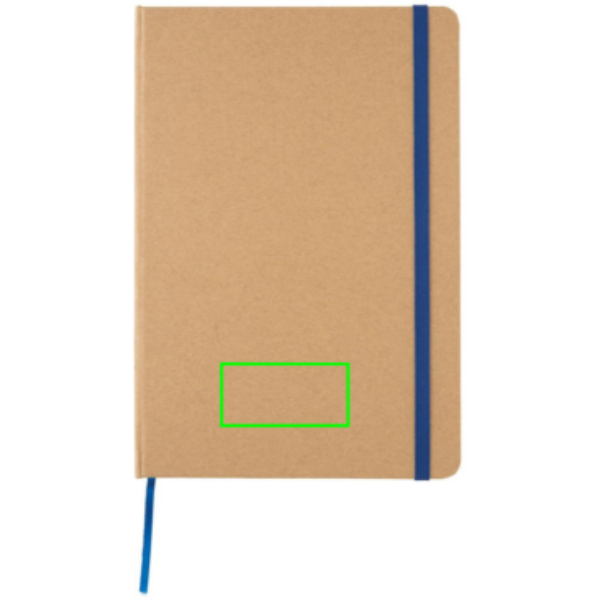 Kraft cover notebook with recycled paper. 72 sheets/144 pages of 70 g/m2 paper. Cream coloured paper. Elastic band and bookmark ribbon.