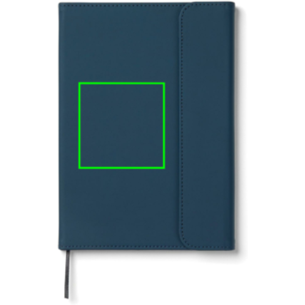 Sleek A5 notebook in a smooth touch. Its cover, crafted from 30% recycled matte PU, features a magnetic closure and an integrated pen holder. Within, 80 sheets/160 pages of 70 gsm lined recycled paper, suitable for all your note-taking needs. The paper insert can be replaced, allowing for prolonged use over time. Certified by GRS (Global Recycled Standard), GRS certification guarantees that the entire supply chain of the recycled materials is certified. The total recycled content is based on the overall product weight. This product contains 54% GRS-certified paper and 5% GRS-recycled PU.