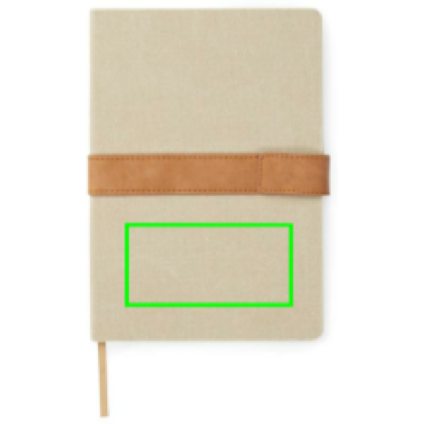 Take notes in style with our A5 notebook, featuring a canvas cover with a convenient PU-band and magnet closure. The notebook contains 80 sheets of 80 gsm RCS recycled paper with lined pages, making it perfect for all your note-taking needs. Made from 65% RCS (Recycled Claim Standard) certified recycled paper, the notebook is a responsible choice. The RCS certification ensures a fully certified supply chain of the recycled materials used, emphasising our commitment to responsible sourcing. The total recycled content of the notebook is based on its total weight.