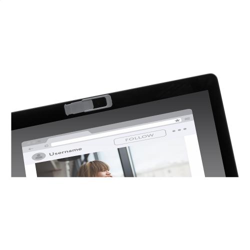 Plastic, anti spy webcam cover with sliding cover and adhesive back.