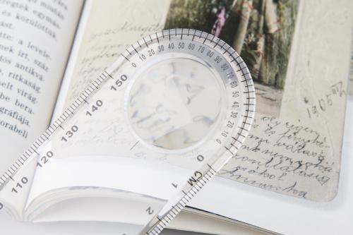15 cm plastic ruler with magnifying glass.