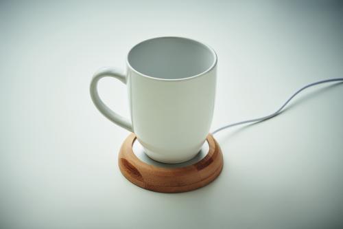Mug warmer device in bamboo. Keep drinks warm to a max of 45ºC. It has a USB connection cable.