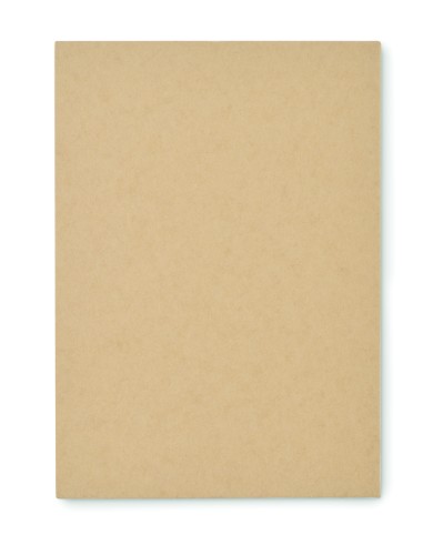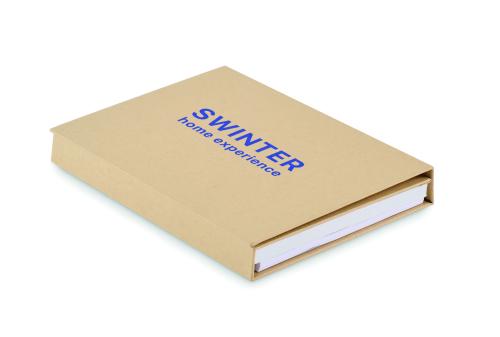 Stationary notepad set with recycled carton cover. 70 lined recycled sheets. Sticky memo pads and page markers. Push ball pen with paper barrel and ABS parts, ABS sharpener, 2 wooden pencils, 15 cm wooden ruler, and PP protractor.