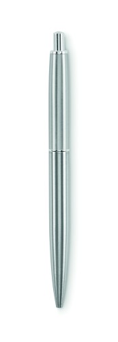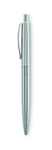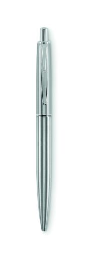 Push button ball pen in recycled stainless steel barrel. Blue ink. Presented in gift box.