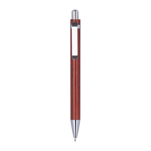 Ballpoint pen made of lacquered wood with a blue-writing refill and silver applications.