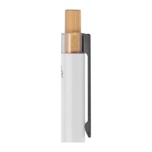 Recycled aluminium ballpen with metal clip, blue refill and bamboo pusher.