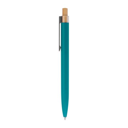 Recycled aluminium ballpen with metal clip, blue refill and bamboo pusher.