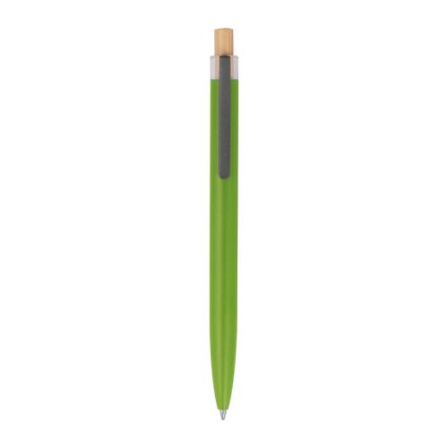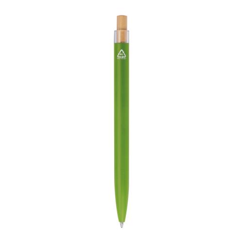 Recycled aluminium ballpen with metal clip, blue refill and bamboo pusher.