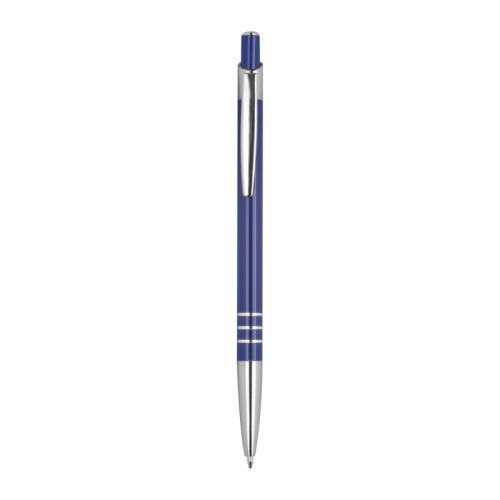 Biros in slim shape made of recycled aluminium, with blue refill and three decorative rings.