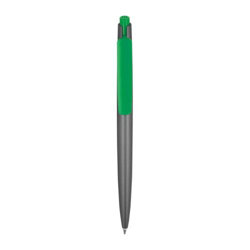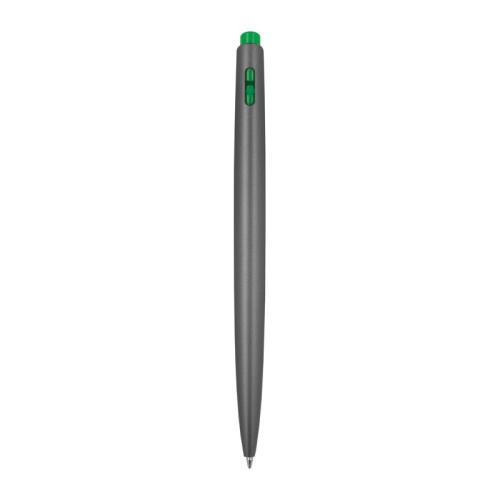 Retractable biros made of recycled plastic with coloured applications and large capacity refill that writes in blue.