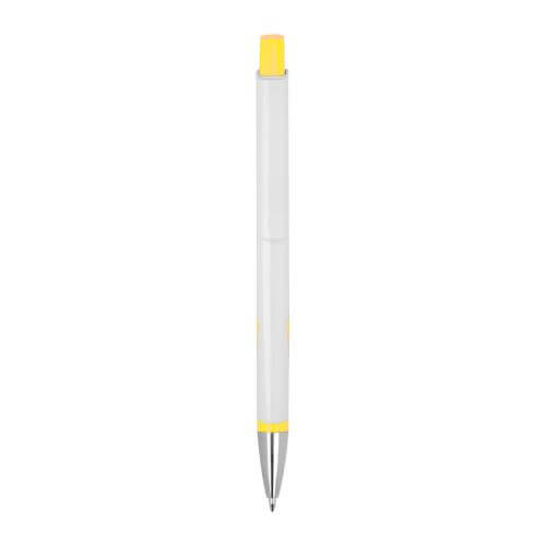 White ballpoint pen made from recycled plastic (RABS) with blue ink refill.