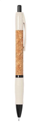 Ecological wheat straw plastic ballpoint pen with natural cork covered barrel and rubber grip. With blue refill.