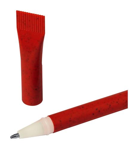 Ecological wheat straw plastic ballpoint pen with matching colour cap and blue refill.