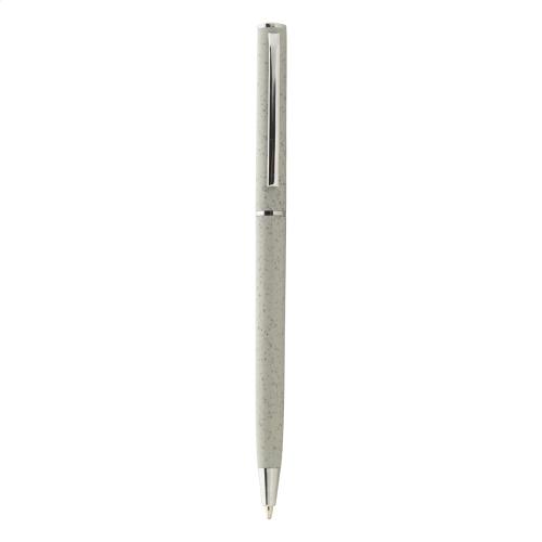 Ecological wheat straw plastic twist ballpoint pen with chrome details. With blue refill.
