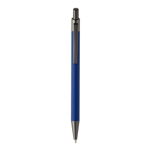 Recycled aluminium ballpoint pen with rubberized body and gunmetal finish parts. With blue refill.