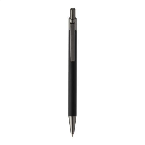 Recycled aluminium ballpoint pen with rubberized body and gunmetal finish parts. With blue refill.